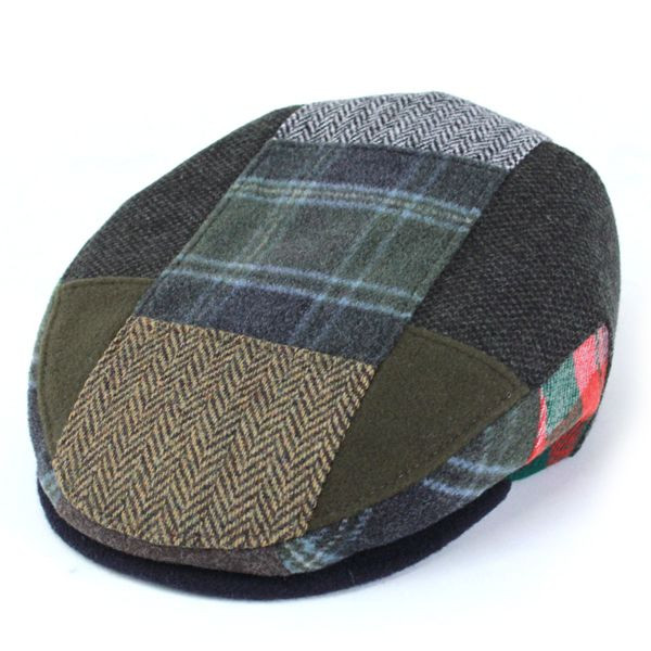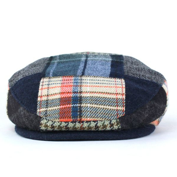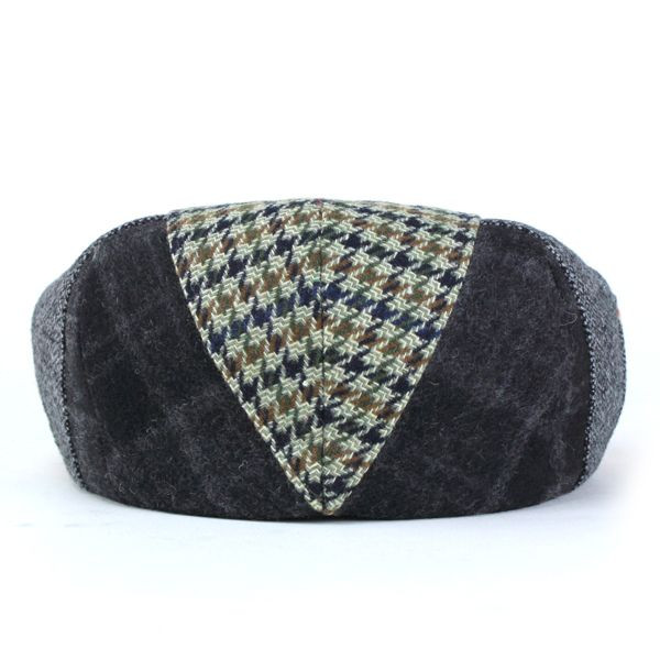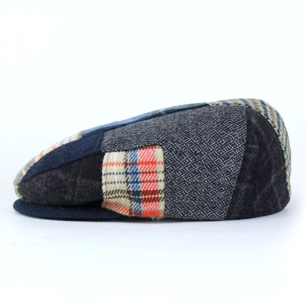 パッと見ただけで目を引くようなパッチワーク使いのハンチングです。左右が対象の柄になっていて見た目以上にクセはなく比較的使いやすい帽子。素材にウールが入っているので暖かく毛羽立ったような触り心地が秋冬らしい素材感です。