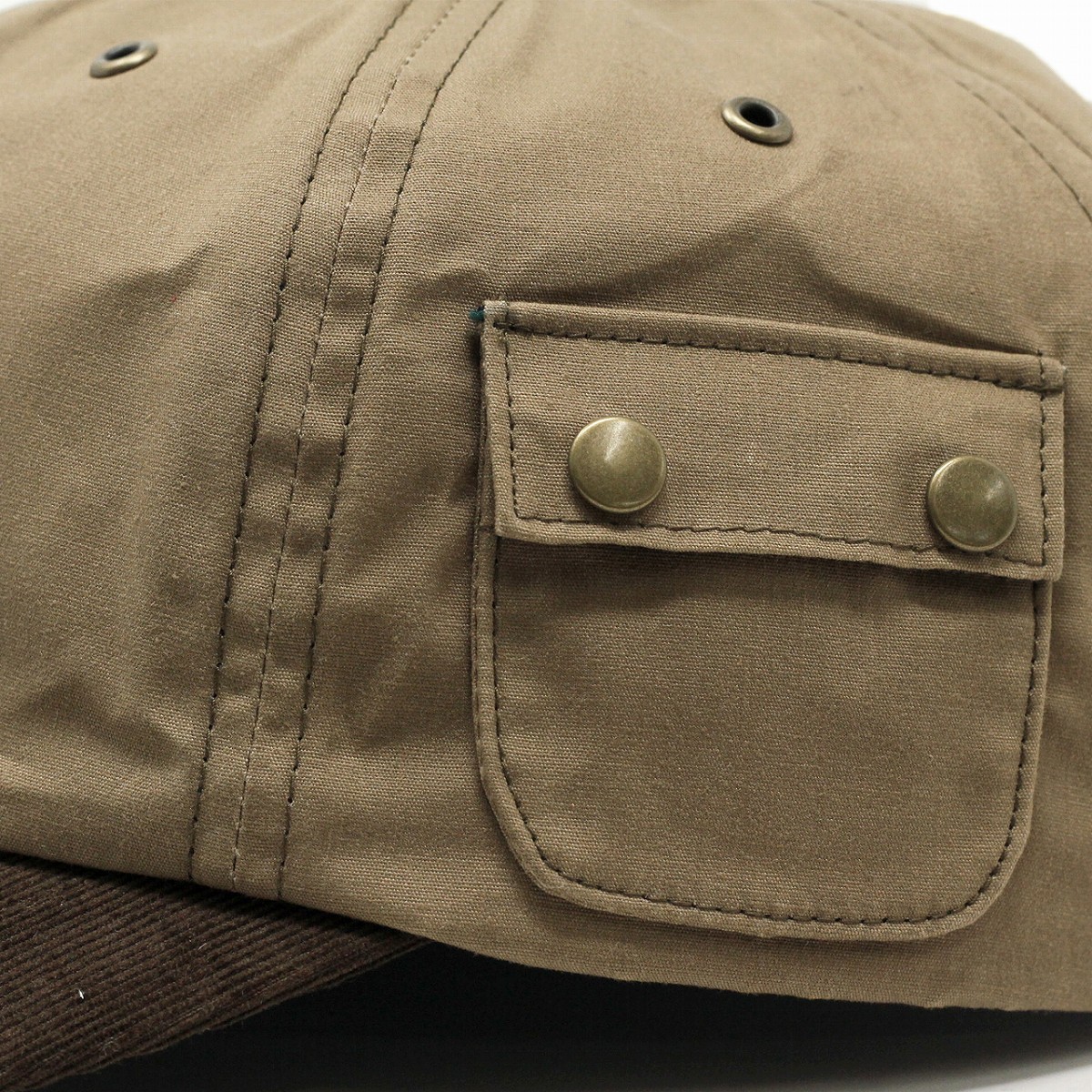 ヴィンテージな雰囲気を表現する製品作りに定評のあるブランドTHE FACTORY MADEのパラフィンキャップです。少しゴワついた生地感のパラフィン[帆布]はタフさがあり、このブランドの雰囲気にもよく合っています。Re Fashionをテーマにミリタリージャケットの一部を切り取ったかのようなデザインをキャップに落としこんでいて、両サイドに付いたポケットがとても魅力的です。ポケットの仕様も細部までこだわり古き良きミリタリー感を忠実に表現しています。パラフィンは使い込んだり、手もみをすることでチョーク跡が生まれ、風合いを楽しむことができます。※バックアジャスターにて-約3cmほど縮めることができます。