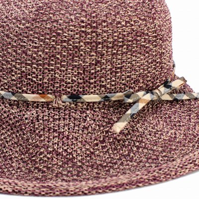 一見麦わら帽子のように見えるけれども、コットンを60%使用した触り心地や着用感のいいハットです。裏地もなくやや透け感もあるので通気性抜群でとても涼しく、春夏に活躍する素材が使用されています。麻のような紙のようなサラサラをした手触りで、汗をかいても快適に過ごすことができます。腰部分にぐるりと巻いたダックスの象徴のハウスチェックのリボンが上品で特徴的です。リボン部分はサイズをきつくしたり、他の形に結びなおしたり、外してしまったりすることも可能なので自分の好みのかぶり心地にアレンジしてかぶれます。※内側のアジャスターで約-2cm程度のサイズ調整できます。リボン部分を結びなおすことでアジャスターのサイズ感よりさらに少し小さくすることも可能です。