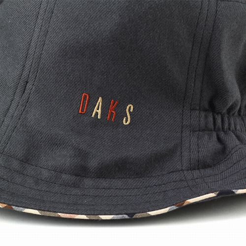 前ツバの上がっているオブザー型の帽子です。コーディネートを選ばないシンプルでカジュアルなデザインで、つば先部分にはダックスの象徴でもあるハウスチェックをアクセントに。紫外線防止加工です。