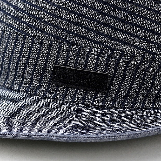 素材: ストライプタンブレー頭部分[麻:40% 綿:32% 再生繊維(テンセル):22% ナイロン:6%]つば部分[麻:100%]ワッペン部分[牛革]